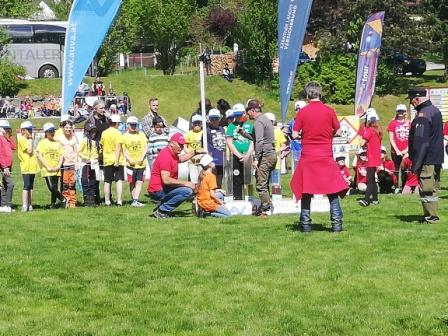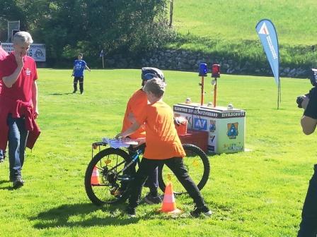 Nach der Eröffnungszeremonie mit dem Hissen der Olympischen Fahne, mussten die SchülerInnen ihr Können den Zivilschutz betreffend mit elf anderen Schulen aus dem Bezirk unter Beweis stellen. Bei einem Feldwürfelspiel mit Sicherheitsfragen, einem Geschicklichkeitsbewerb mit Fahrrad, dem Löschbewerb und einem Gefahrensymbol-Würfelpuzzle verging die Zeit wie im Flug.