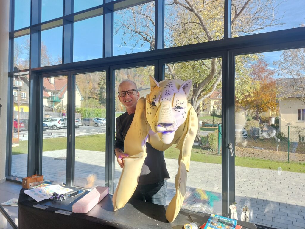 Der Autor, Illustrator und Puppenspieler Stefan Karch ließ seine Bücher lebendig werden. Die Kinder erlebten durch unterschiedliche Geschichten die Vielfalt der Sprache. Die Vielzahl von Möglichkeiten, wie man Geschichten erzählen kann, überraschte die Kinder ebenso.