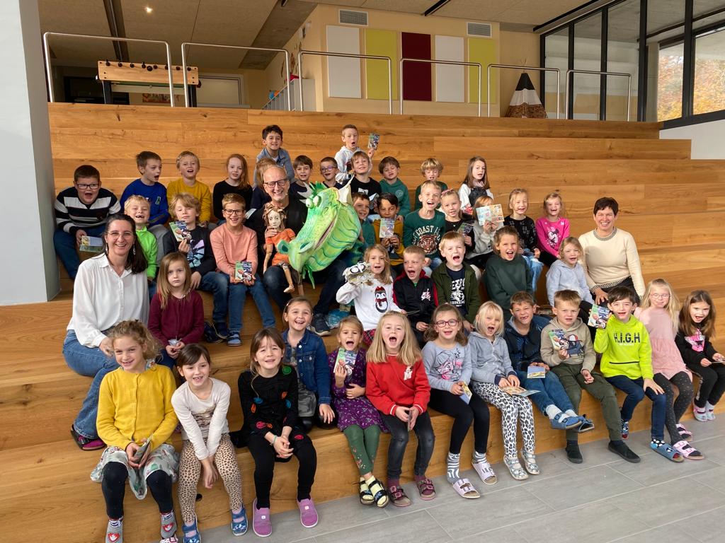 Damit wir diesen fantasievollen Vormittag noch lange in Erinnerung behalten, wurden einige Bücher von Stefan Karch für unsere kleine Schulbibliothek angekauft. Ich hoffe, dass so manches Kind durch diese Lesung ein bisschen zum LESEN motiviert werden konnte.
