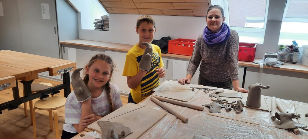Mit großer Begeisterung und Genauigkeit machten sich die SchülerInnen an die Arbeit. Sie formten, töpferten, verzierten und glasierten. Jeder einzelne Arbeitsschritt wurde über mehrere Stunden ganz sorgsam durchgeführt. Zum Schluss bekam noch jeder Wichtel seinen Namen.