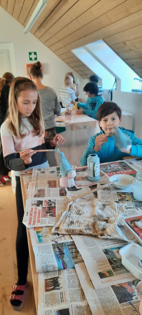In der Vorweihnachtszeit waren die Kinder wieder sehr kreativ. Zusammen mit der Künstlerin Karin Manthei aus Techelsberg gestalteten sie bezaubernde Weihnachtswichtel, welche bunte Fröhlichkeit, ein Lächeln und Freude in dunkle Tage bringen – so sehen es die SchülerInnen der 4.Klasse.