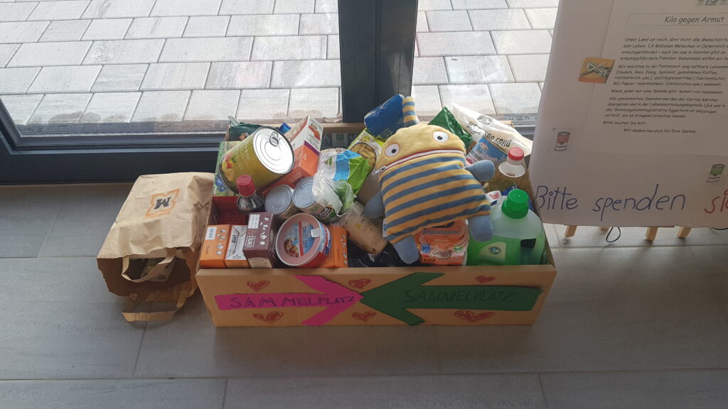 In der Fastenzeit wurde in der Volksschule Pörtschach eine Sozialaktion für die Lebensmittelausgabestelle LEA und für das Eggerheim für Obdachlose der Caritas Kärnten durchgeführt. Es wurden haltbare Lebensmittel und Hygieneartikel gesammelt.