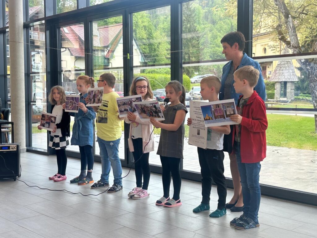 Am Freitag, dem 03.05.2024 wurde die Lichtsäule, welche im Rahmen des Projektes „Lebenskunst Altern“ entstanden ist, in der Aula der Volksschule Pörtschach feierlich eingeweiht. Volksschuldirektorin MMMag. Dr. Sonja Stark sowie die KinderbürgermeisterInnen eröffneten die Feier. Neben Worten von Frau Bürgermeister Mag. Silvia Häusl-Benz, Landesrätin Frau Mag. Sarah Schaar sowie dem dafür verantwortlichen Künstler Herrn Heimo Luxbacher gestalteten die Schülerinnen und Schüler die Feierlichkeit mit tollen Beiträgen, Liedern und Darbietungen. Weiters wurde auch das Fastentuch, das seit letztem Jahr in der Fastenzeit das Kreuz der katholischen Kirche verhüllt, vorgestellt und in Bildern und Worten von den Kindern präsentiert. Alle Beteiligten und Mitwirkenden an diesem Projekt erhielten als Dank und Anerkennung eine Auszeichnung durch die Landesrätin verliehen. Über die Auszeichnung freuten sich MMMag. Dr. Sonja Stark als Direktorin der Volksschule, die ehemalige Direktorin Frau Gertraud Warmuth, der Künstler Heimo Luxbacher, die Leiterin der Galerie ZuGängliche Kunst Frau Elisabeth Plank, der Fotograf Mag. Martin Assam und Herr Josef Wienerroither für den Pfarrgemeinderat. Auch für den katholischen Pfarrer Joseph Thamby Mula und die Tischlerei Widmann wurden die Auszeichnungen gerne übernommen. Im Anschluss an die Feier gab es für jedes Kind ein Getränk und eine kleine „Süßigkeit“ aus dem Korb der Bürgermeisterin.